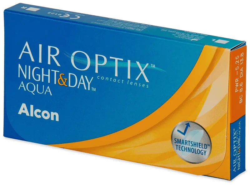 Nová verzia mesačných kontaktných šošoviek Air Optix Night and Day v plochej krabičke. Okrem obalu došlo taktiež k nepatrnej zmene v obsahu roztoku, v ktorom je kontaktná šošovka v plastovej vaničke pri výrobe uložena (1 % obsahu roztoku tvorí látka Copolymer 845). Kontaktné šošovky by vďaka nej mali byť zmáčanlivejšie, teda pohodlnejšie. Šošovky samy o sebe zostali nezmenené.Výnimočnosť kontaktných šošoviek Air Optix Night and Day Aqua spočíva v extrémne vysokej priepustnosti kyslíka, ktorá umožňuje jeho dostatočný prísun rohovke, aj keď je oko zakryté viečkom (počas spánku).